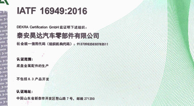 泰安昊達汽車零部件有限公司位于新泰市經(jīng)濟開發(fā)區(qū)嶅山路7號,公司成立于2011年,是一家生產(chǎn)中、重型卡車底盤鑄鍛件、焊接件、發(fā)動機配件的專業(yè)廠家,廠區(qū)占地面積101畝,2018年建設(shè)年產(chǎn)300萬件汽車零部件項目,項目總投資3.16億元,總建筑面積3.6萬平方米,是新泰市汽車裝配產(chǎn)業(yè)鏈的重點項目、2018年、2019年泰安重點項目,現(xiàn)已建設(shè)完畢,于2019年1月1日正式投入使用,設(shè)備新上覆膜砂自動化鑄造生產(chǎn)線1條、熱模鍛生產(chǎn)線6條、自動化焊接生產(chǎn)線10條、CNC加工設(shè)備200余臺套。 主要產(chǎn)品:中、重卡車底盤配件、轉(zhuǎn)向配件、中后橋氣室支架總成、中后橋配件、前橋轉(zhuǎn)向節(jié)臂、焊接配件、發(fā)動機配件。產(chǎn)品主要銷往中國重汽集團、市場份額約50%,位居行業(yè)鑄件產(chǎn)品前三。 公司擁有IATF16949:2016國際標準質(zhì)量管理體系認證,擁有實 ......